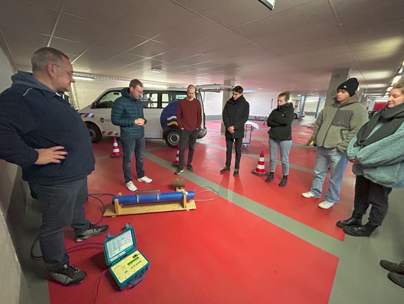 Nach einer Vorstellung der Firma in den Räumlichkeiten der Geschäftsführung begann das Programm mit einer anschaulichen Demonstration in der Tiefgarage. Hier wurde an mehreren aufwendig errichteten Stationen die praktische Umsetzung unserer Arbeit im Bereich Netzmanagement dargestellt. Die Studierenden nahmen die praxisorientierten Einblicke mit großem Interesse auf.
